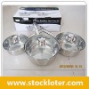 Cookware Set Websitewww.stockloter.comLot No.100902Model No.NullDescription6pcs Cookware SetUnitSetQuantity12,300Quantity Tolerance(+-)200MOQ2*40HQ( roughly 7780 sets)PaymentTelegraphic Transfer. 30% deposit when order confirmed and before cargo inspection, while Balance 70% to be paid before shipmentLoading PortShenzhenMaterial1.Body material :Stainless Steel 201, thickness 0.3mm 2.Capsulated bottom 1mm aluminium, 0.5mm bottom (Stainless Steel201201), 3.Tempered glass lid, 4.Stainless Steel hollow handle, deal with rivet Inside and outside mirror Specificationsaucepan 16x7.5cm w/lid, handle length: 16.5cm saucepan 18x8.5cm w/lid, handel length:17.5cm saucepan 20x9.5cm w/lid, handle length:19cmColorSilvery, as pictureBrand NameDMApprovalNullOriginal MarketUKStock ReasonBuyers incapability to make the balance payment.Packing Detailsone set/ color box/42x25x14.5cm, 4sets/ctn/51.5*43*31cm,0.07cbm/ctn*3075ctns=215cbmUnit Package Weight10 kgs For more details please feel free to contact us! Buy stocklots from stockloter.com, no better solution!