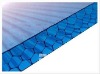 Polycarbonate honeycombhollow sheet With 12 years'experience in polycarbonate production,with advanced technology and facilities introduced from Italy and Germany.100% Bayer rew material. We are looking forward tocreating mutual brilliance withyou. Features: 1)Light transmission: the transparence rate can be up to 12-80% according to different color. 2)Impact resistance: 3Temperature resistance range:-40 120 degree centigrade. 4)Light weight: 5)Ultravoilet resistance : with UV protetive layer. 6)Fire retardent: rated class B1. 7)Sound and heat proof. 8)Long life time 9)Inhibits condensation. 10)Easy to install. Specification 1)Width:2100mm(our regular specification) 2)Length:6000mm(5800mm)/12000mm(11600mm) 3)Available in 6mm,8mm,10mm,12mm,14mm 4)Color:clear,lake blue,blue,grass green,opal,grey,red,brown,black and so on. 5)Customized colors and demensions available upon request. 6)Lead time:7days(for our regular product) 7)Packing:both sides covered with PE film. Application: 1)For unusual decorations,corridors and pavilions in gardens and recreational and restingplace. 2)For interior and exterior decorations of commercial buildings,and curtain walls of the modern urban building. 3)For the transparent containers ,front wind shields of motorcycles,airplanes,trains,ships,vehicles,motor boats,subm arines and glasspolice shield. 4)For telephone booths,street name plates and sign boards. 5)For insruments,panels and military industry. 6)For walls,roofs,screens and other high quality indoor decoration material. 7)For sound insulation shields on express ways and city overhead highways. 8)For agri culture greenhouses and sheds.