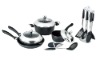 15PCS PT-TC15 16cm sauce pan 24cm soup pan 24 cm Deep fry pan 28 cm Round fry pan 7PCS cooking Tools1)Color: optional (2)Handle: Bakelite or heat-resistant stainless steel (3) Inner finish: double-layer black non-stick dope (4) Outer finish: spray powder or painted with high temperature lacquer (5) Machined and compound bottom (6) Scope: induction cookers, gas stoves, electric cookers and others (7) Non-stick surface, fast heat transfer, uniform heating (8) Saves energy by up to 40%, environmentally-friendly (9) Prevents oil fumes, helps retain nutrients in food while cooking