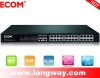 S2526F is L2 managed gigabit ethernet switch, oem ethernet switch,network switch. Comply with IEEE 802.3, IEEE 802.3u, IEEE 802.3ab, IEEE 802.3z, IEEE 802.3x, IEEE802.1Q, IEEE 802.1p standard24 10/100M auto-negotiation RJ45 ports, 2 Gigabit uplink RJ45/SFP (mini GBIC) port multiplexingUsing storage – forward switch modeSupport for MAC address self-learningSupport port bandwidth control, broadcast storm control, port aggregationSupport IGMP (V1, V2) Snooping (Multicast Application)Support Port based VLAN, 802.1Q VLAN, and many-to-one settingsSupport for VLAN across functionsSupport for port number priority QoS of port-based, 802.1p, IP TOS / DS, and TCP / UDPSupport for MAC address binding, TCP-UDP port filtering security settingsSupport port mirroring and port traffic statistics functionSupport pure English WEB management interfaceDynamic LED indicator to display the state of equipment and provide a simple troubleshooting19 inch standard rack-mounted steel design Specification Hardware SpecificationStandards and ProtocolsIEEE 802.3, IEEE 802.3u, IEEE 802.3ab, IEEE 802.3z, IEEE 802.3x, IEEE 802.1Q, IEEE 802.1p Fixed Port24 10/100M auto-negotiation RJ45 port 2 gigabit uplink RJ45/SFP(mini GBIC) multiplex port Background Bandwidth4.8Gbps MAC Address Table8K Forwarding Rate10Mbps: 14880PPS 100Mbps: 148800PPS 100Mbps: 1488000PPS Dimensions (W x H x D)440*180*44(mm) Input Voltage100V 240VAC,50/60Hz Power Consumption< 30W Heat Dissipationnatural heat dissipationSoftware SpecificationPort ManagementPort setting Set the port's basic information, such as rate, duplex mode Port bandwidth controlSupport Broadcast Storm Control Support Port traffic statistics Support Trunk Support VLAN SettingPort-based VLAN Support Based on 802.1Q VLAN Support Many-to-one setting Quickly send data from multi-port to a destination port QoS Settings QOS setting Port-based, 802.1p, IP TOS/DS and TCP/UDP port number Queues scheduling algorithm Strict Priority (SP), Weighted Round Robin (WRR) Security Settings MAC address binding Support TCP/UDP port number filtering Support Other Settings Timeout setting Set the frame timeout in the output queue VLAN Across Support IGMP(V1,V2)Snooping Support VLAN Uplink setting Support System Management WEB management Support Modify the user name and password Support IP address modification Support System state Display some of the system parameters of switch, such as: software versions. Back up and recover current configuration Support Restore factory settings Support Restart Support
