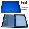 Expanding File Folder -With Notebook - 5 Pockets Size:LetterSize: 26.5*33*5cmStructure:- 5 Tabs / 5 Expanding pockets - 2 CD holder and 2 business card holder - Flap with velcro for closure of expanding pockets - Inside pocket to hold notebook pad - Pen holder - Button and bungee for closure - White tab sticker Material: - Outside : 100% Opaque PP of 0.65mm thickness- Inside : Transparent PP of 0.18mm thickness - Note Pad: 30 Pages,size 20.3 x 29.5 cm, single line on both side 70 gsm paper Color Selection:Blue, Red, Black (Any color is available.) Emboss:Customized logo, item & batch code is available.Printing:Customized design or logo printing is available.Packing:30 Pcs / CtnSticker:Customized sticker can be printed. OEM Service is welcome.Well organizing, and suitable for office use. Any interest in this item, "CONTACT NOW" or email please ! I am happy to be on service to you !