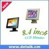 8.4 inchTFT LCDMonitor; PC Monitor Specification SPECIFICATIONModelDK-080401Lcd Display8.4" TFT Active Matrix PanelDisplay Size171(H) x 128(V) mmPixel Pitch0.213(H) x 0.213(V) mmDisplay ModeVGA 640 x 480 (60/72 Hz) VGA 720 x 400 (70 Hz) SVGA 800 x 600 (56/60/72/75 Hz)Max ResolutionSVGA 800 x 600Display Color262KContrast Rate300 : 1Brightness350 Cd/m2Response Time40 msViewing Angle+50 -50 Degree (L/R), +60 -60 Degree(U/D)Input SignalVGA Audio(Optional)Signal Connector15 Pin D-SubFront ControlPower On/Off, Menu/Select, Adjustment(+ -)OSDBrightness, Contrast, H-Position, V-Position, H-Size, Color, Auto, Phase Reset, Language, Screen, ExitPlug & PlayDDC1 / 2BAudio System0.7W / Per Channel (Optional)Power AdapterInput AC 100-240V, 50-60Hz Output DC 12V/2.0A( Min )Operating ConditionsTemperature: 5 35 Degree C ( 41 95 Degree F ) Humidity: 20 80% (No Condensation)Storage ConditionsTemperature: -20 60 Degree C ( -4 140 Degree F ) Humidity: 10 90% ( No Condensation )Dimension( H X W X D )280 X 220 X 130 mmWeight3.5 KGS Gross, 2.5 KGS Net, Meas. 37.5X37.5X19.1 CM3ColorWhite/Black Design and specifications are subject to change without notice!