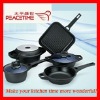 8PCS PT-TC8 18 cm Sauce pan 24 cm Soup pan 24 cm Shallow soup pan 24 cm Deep fry pan 28 cm Grill pan (1)Color: optional (2)Handle: Bakelite or heat-resistant stainless steel (3) Inner finish: double-layer black non-stick dope (4) Outer finish: spray powder or painted with high temperature lacquer (5) Machined and compound bottom (6) Scope: induction cookers, gas stoves, electric cookers and others (7) Non-stick surface, fast heat transfer, uniform heating (8) Saves energy by up to 40%, environmentally-friendly (9) Prevents oil fumes, helps retain nutrients in food while cooking