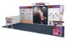 F.A.S.T. Modular Exhibition Display System Inline Exhibit, 10' x 20' Size: 19.67' W x 8.39' H x 9.84' D 6000mmW x 2560mmH x 3000mm D Packing: Wheeledmolded case Interior dimensions: 4.92'L x 2.40'W x 1.22'H 1250mm L x 610mm W x 310mm H Exterior dimensions: 5.59'L x 2.91'W x 1.54'D 1420mm L x 740mm W x 390mm D G. W.: 143Kgs / 317.46Lbs Kit includes: 1 backwalls 1 curved canopies 8 counter shelves w/ 2 storage cabinets and 4 downlights 1 perforated panel w/8 hooks and 5 acrylic shelves 1 reception area 2 side wings(PVC board) 3wheeledmolded cases Optional items at extra cost include: 2 counter 2 spotlights Graphics