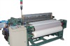 AIR JET GAUZE MECHINERY---PQ08A& PQ08BTECHNICAL SPECIFICATIONOperating mode: main nozzle one-pass air-jet weft insertion; Reed width: 1400mm Shedding device: rocker arm shedding, tappet shedding; Speed of crankshaft: 300-500 r/min Control: left-hand operation Weft selection: one color Flange for weaver's beam: 550-600 mm Drive: electromagnetic brake (24V) Motor speed: 960 r/min (0.8KW V-belt drive)10. Dropper bar number: 4 contact bars.11. Pick density: 4-30 picks/cm12. Licker-in roller diameter: 127 mm13. Cloth roller diameter: 95/74 mmMACHINE FRAMEMachine frame comprises mainly wall plates on the left and right sides, two cross beams in the front and rear that link the plates, middle cross beam, front beam, and small supporting parts which hold the parts together into a machine body. The frame is placed on a wood block and fixed to the ground with anchor bolts. It adopts electromagnetic clutch and brake attractive transmission.TRANSMISSIONThe releasing and braking processes are both controlled by a microcomputer.WEFT INSERTIONWeft insertion mechanism uses an independent air nozzle. The process is initiated by a crank shaft. It drives the air pump by pressing a piston, letting compressed air burst out of the gate and blow the weft.CUTTERShedding cutter and blades are mounted on the weft insertion seat as an independent cutter device to cut the weft.BEATING-UPThe beating-up system has a special crank shaft which is linked to the machine base. As this shaft moves back and forth, as well as the steel buckle on the machine base, the weft inserting process is smoothly carried out.LET-OFF Interior electrical weft feeding is controlled by sensors and computer program, with the assistance of an auto tension adjustment device. Such a mechanism ensures an even feeding volume and a constant weft tension. (FOR PQ08B)TAKING-UPThe take up structure adopts worm wheel, and non-stop mechanism. The take up of cloth is conducted by the licker-in roller driven by change gears. (Electrical take up structure is added for PQ08B.)CLOTH-ROLLINGTorsion spring pressing cloth-rolling mechanism makes the removing of cloth as easy as just pressing the spring.STOPThe cutting of warp and weft is conducted by an electrical device which can stop automatically once the cutting is done. This device has a red light indicates the stop of warp and a green one indicates the stop of weft.