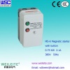 MS-K Magnetic starter with button 1. APPLICATION The starter is with the application of 50/60Hz AC voltage to 660V, current to 95A, The following circuit as the control of three-phase squirrel cage ,to Start, stop and reverse starting the moter. Which is with the small volume, installation convenience features. It has lost pressure and overload protection performance. The starter applied to the environment under normal use (with out explosion-proof, anti-corrosion). The products have many kind of with buttons, button-sealed Circle and without button, etc.It is apply to hot and humid area. Technical data: a model by loading products, specifications, capacity control. 2.The normal working and installment conditions 1. Surrounding air temperatures: The surrounding air temperature upper limit does not surpass +40 °C, the lower limit is not lower than -5°C, The average temperature does not surpass +35 °C in 24 hours. 2.Installation sites altitude above sea level does not surpass 2000m. 3.Atmospheric relative temperatures does not surpass 50% when the surrounding air temperature are 40 °C, Can not have a higher relative humidity in a lower temperature, In the wettest month monthly average most low temperature is +25 °C, the monthly average maximum relative humidity is 90%, and consideration the dew on product surface.Because of the temperature change 4.Installation sites environmental pollution can be 3 levels. 5.Install category is III kind. 6.Install condition: A. Installment gradient with vertical not to surpass 5°b. Installs in without remarkable vibration and impact place. 3.Main technical parameter 1,Rated frequency 50Hz 2,Rated insulation voltage 660V 3,Rated working voltage 220V, 380V, 660V 4,Rated fixed working voltage and the rated current of thermal relay and the maximum power of controlled three phase AC motor