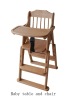 baby chair 1.Item number:baby chair and table 2.Dimension:500*450*800(mm) 3.Material:Solid European beech wood or others 4.Function :With the foldable function 5.Feature:environment friendly ,secure and practical 6.Modern design , secure and durable to use for baby