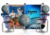 1.The Pronto Modular Display is ideal for the exhibitor who wants a custom looking display for a fraction of the cost. 2.The trade show display is produced with stock exhibit material (Aluminum extrusion), but with its modular capabilities, each PRONTO display is uniquely designed to fit specific exhibiting needs. 3.The large graphics on the display can produced with dye sublimated fabric, metal sheet, PVC mounting, laminated MDF ,or printing graphics , which is placed to the extrusions to create a rigid-looking graphic wall. By producing the image, the display can be tightly packed for easy shipping and storage, and the fabric can be washed as needed.