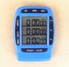 3 Timers Count Down Simultaneously with Triple Display. Clock: Displays Hr/Min/Sec (AM/PM) 100 Hour count down/up time with 1/100 second count up display. Memory and Alarm will beep for 1 minute once it reaches the set time. Requires: 2 x 1.5V Lithium Batteries (Included) Large LCD with clear and readable information on the screen Flexible design suitable as stand-alone on a desk or a magnet for the refrigerator Available space for customized Logo imprint Material: ABS LCD screen size: 4.38 x 3.98 cm Dimensions: 8.82 x 6.62 x 1.32 cm, Wei ght: 90g Product Patented