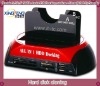 1.HDD Docking Station 2.Hard disk cloning 3.Support 2.5"3.5"SATA HDD Interface 4.Hard Derive capacity2TB 5.All in 1 Card ReaderCF/SD/XD/TF/MS 2 Port USB HUB6. External; USB/ESATAApplicatin: 1:Do not connect USB interface ESATA interface to the device when the hard disk cloning, do not access to computer. 2:disk (mother disk)< B disk(son disk) 3:After access A disk and B disk to the device ,open the power supply ,click the button ,indicator light willbe half that cloning device is in a ready state,(note that the systen default' s interval time is 5 seconds) afder 5 seconds if you did not click the second button ,the indicator ligth will elimiate that cloning browser returns to standby state Within 5 seconds, click the indicator light glaring thst is was in cloning ,state .Divide all files and partition from A disk to B disk .(lf Bdisk > Adisk ,for example : A disk 80G ,B disk 160G , after cloning ,there are80G not divided in B disk ,please divide in manager partition )indicator lights out .Hard disk can beremoved. ·Standable,Convenient and Trendy Design. ·USB 1.1,USB 2.0,SATA , and SATA Compatible. ·Hi speed USB2.0 Data Transfer Rate Up to 480Mb/s(Max),SATA Transfer Rate Up to 1.5GB/3GB/s. ·Supports all 2.5"/3.5"SATA Hard Disk of any capacity. ·Hard disk Cloning(OTC), with one button for cloning ·Plugs and plays and is hot-swappable Support(1)CF SLOT.(2)SD SLOT.(3)XD SLOT.(4)MS SLOT.(Mini SD,T-Flash/Micro SD Adapter required)for fast multimedia files access. ·Power LED indicator ·Support Windows:Windows 98/98SE/ME/2000/XP/VISTA and MAC OS 9.X,or above ·Power:Input:100-240V,50/60Hz,1.0A Output:12.0V-2500mA 5.0V-3500mA ·Output interface:USB Mini 5Pin;3.5"2 SATA interfaces