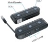 USB2.0 3 port HUB and USB Audio combo Built-in USB 2.0 sound card, audio-out and Mic in Built-in Super Slim USB Cable, compatible with USB 2.0 spec. Super Slim size for portable and business use Support 3 port USB 2.0 HIGH SPEED HUB up to 480 Mbps; Plug and play Size:90*27.5*17MM Available stereo mixed music effects, Record function by microphone Driverless for Windows me/2000/XP, mac OS 10.0&linux,2.4.2 or above