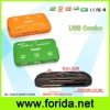Card reader combo,usb 2.0 combo hub and reader. Feature: 1)USB version 2.0 standard, compatible with USB version 1.1 2)6 Slots multifunction flash reader 3)Data transfer rate up to 480 Mbps 4)Supported all kinds of flash cards in the market 5)Plug and play and hot swapping 6)LED indicated power and access more 3 extension USB port 7)USB bus-powered, no external power supply required 8)Support OS : wIN 98SE/2000/Me/XP/Mac OS 8.6 or higher 9)Support XD Card/SDHC/SD/MMC/MMC/RS MMC/ Ultra SD/ Extreme SD/ Extreme SD/T-Flash / MS/MS PRO/MS DUO PRO/MS DUO/ MS MG/ MS Pro MG/MS Duo MG/ M2 /Mini SD + three USB HUB Packing: BlisterSize :72*42*15mm Function: 1. 3 port compact USB hub is the ideal companion for ur laptop or desktop computer, 2. Ideal USB expansion for portable use on the road or at home 3. Perfect for connecting USB 1.1 or 2.0 perpherals such as USB mouse ,scanner,digitak camera,digital vidicon,audio-system,display ,U disk,etc 4. Ideal gifts or as promotional items.