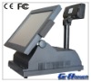 15" POS Terminal Model: GT-1502-SR Display: LCD Panel: 15 TFT LCD Panel Second Display: Customer Display (optional) Touch screen: 5 Wires Resistive Touchscreen PC Config Chipsets: Intel 945GC+ICH7 CPU Intel Atom(TM) 230 1.6G Graphic Integrate GMA950 GRAPHICSsupport DX 9.0 Audio Integrate ALC655 codec, support 2/4/5.1 channel audio-out RAM 1G DDRII, support DDRII 533/667, HDD: 80G / 160G Lan card: Internal RTL8100C, Support non-HDD system Power supply Input AC 100-240V, Output DC 12V 7.5A Support OS: Window XP, Linux FC 7 I/O Ports: 4 x USB 2.0, 4 x RJ-45, 4 x Serial 1x LPT, 1 x PS/2 keyboard,1 x PS/2 keyboard Mouse 1 x VGA out, 2 x Audio (Line Out / MIC), 1 x Parallel, 1x PCI slot Dimension: 470mm (L) ×440mm (W) x 320mm (H) Operation Temperature0°C 50°C (CPU with heat sink) Storage Temperature-20°C 60°C Optional Peripherals MSR POS Printer Barcode Scanner