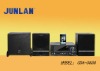 DVD UNIT 1. Playback DVD, DVD +/-R, DVD +/-RW, CD, CDR, CDRW, JPEG, WMA 2.YUV, Coaxial digital output, S-Video Output, RCA AV output, Sub-woofer output 3. 4" Full range Speaker x 2, 5" sub-woofer. Stereo H/P jack. 4. USB Host. SD/MMC Card reader (Pull type). Playback MP3/WMA . through card and USB 5. PAL & NTSC Compatible 6. Up converts the resolution of DVD to 1080p and control by OSD menu. 7. Front panel 3.5mm Stereo Audio input 8.Aspect Ratio ( 4:3 Pan Scan ,4:3 Letter Box , and 16:9 Wide ) 9.Power supply: 110-220V 60Hz 10. Progressive Scan with YUV interface, controlled by remote control. NTSC/PAL/Auto. 4:3/16:9 Aspect Ratio 11.3.5mm stereo Line-in jack on the front panel (AUX 1) and parallel to the RCA aux-in jack on the back panel. 12.iPOD docking, charging and playback through 30 PIN Connectors (except Shuffle), Universal Well design 13.Automatic iPOD detect. Security IC 3.0 implemented. 14.FM pigtail antenna, AM loop antenna (external). Direct access radio station tuning and preset access. 15.Standby Power Consumption:3W(at 115V AC) Speaker unit 1. Total output(RMS):9W x 2 + 22W @ 10%THD. 2. Subwoofer output: 22W at 10%THD 3.Satellite output: 9W x 2 at 10%THD Size: ( L x W x H ) DVD : 240X268X104MM Subwoofer : 205X220X212MM Satellite : 155X178X210MM