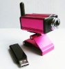 2.4G usb pc webcam with 100 Meter distanceFeatures:2.4G wireless pc webcam with Cute metal case, beautiful design.Multi-used clip, compatible with both desktop and laptop computer.Using good quality lens, performance is better.Resolution: QVGA (320×240) 15 frames/second.Specifications:Built-in microphone, synchronize with video playing.Transmission range:10 meters (open space).Built-in highcapacity Li-ion battery, support 5 hours working after full charging.Standard Mini USB port.One button controlling, easy to use.Working or charging differentiated by indicator light clearly.Its the first wireless webcam with wireless digital transmission, digital video and audio compression technology and USB charging function.