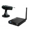 Wireless USB camera Features * Dual Output Mode: USB for PC and AV for TV/Monitor * High speed MPEG 4 compression,support real time image output * Built-in microphone for audio monitoring * 4-channel operation allows multiple (1-4) camera systems (optional) * Long operation range: up to 100 m clear line of sight or 30 m throug walls/ceilings * Camera with AC or Battery operated for portability * Compact, Lightweight and Super Mini size * Swivel bracket included for wall /ceiling mounting * Supports Windows 98/2000/XP MSN Messenger * This receiver not only have auto-scan channel function but also have skip channel function Camera Specification Frequency: ISM 2,400 - 2,483MHz Imaging Sensor: 1/3 inch OMNIVISION Color CMOS Horizontal Resolution: 380TV Line CMOS Total Pixels: 628 x 582 (PAL) / 510 x 492 (NTSC) View Angles: Built-in 6 IR LED,62 degrees Minimum Illumination: 0Lux / F1.5 Gain Control: Automatic Transmission Power: 10mW Consumption Current: 80 mA Modulation Mode: FM Bandwidth: 18M Operating Range: 30m/100m (Obstructed / Unobstructed) Power: DC 8V Operating Temperature: -10oC +40oC Operating Humidity: 85%RH Dimension(WxLxH):36x25x28 mm Weight: 60g Receiver Specification Frequency: ISM 2,400 - 2,483MHz Antenna: Omni-directional antenna Channel: 1-4 (Flip-type switch) Intermediate Frequency: 480MHz Frequency Stabilization: +/- 100KHz Demodulation Mode: FM Receiving Sensitivity: -85dBm Video Output: 1Vp-p@75 ohm, S/N>38dB Audio Output:1Vp-p@600 ohm Power:DC 5V Operating Temperature: -10oC +40oC Operating Humidity: 85%RH Dimension: 100x21x63 mm Weight: 122g