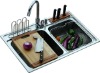 Payment &Shipping Terms: Surface Treatment:Polish/ Electrolized Bowl shape: Rectangular Overall size:850x500x220mm Opening size:114mm /Custmers requirments Style: Drop-in/Lay-on Port:Shunde /Shenzhen MOQ:100 Sets Delivery Time: 25-35 days. Packaging : Nested packing on pallet/Individual Packaging/5pcs/carton. Payment Terms:TT /LC Supply Ability:20,000 Piece per month. Feature The durable top with easy latch device provides quick installation.Advanced pearl white coating and electrolized finish extends life of the sink.Accessories optional :strainer and plumbin /soap dispenser/bottom grid/wooden chopping board.The most popular and our best selling kitchen sink in vairous depth ,thickness and drain opening.Super sound absorbing silencer pad for sound elimination to deaden the nosie and anti-vibration.High whole pull stretch technology solves the loose welding problem thoroughly.The backside of the sink is treated with anticorrosion coating to combat area with extreme high humidity.Beautifully designed high ridges all round the rim of the sink and the overflow hole prevent water splashing on counter top.Imported high grade stainless steel material ,high nickle,anti-corrosion and anti-oxidant,provides durability and easy cleaning.