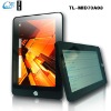 Product name: Tablet PC Model:TL-MID70A03 Specification: 1)CPU:Telechips 8902/ARM11 Kernel + DSP/800MHz 2)OS:Android 2.1, Telechip stable CPU, HD1080P 3)Storage:256MB DDR2 667Mhz/2GB Nand Flash 4)Display:7" digital panel, 2 piont touch resistance type 5)gravity sensing:3D gravity Games 6)Keyboard mouse:support external keyboard, support USB port mouse 7)WiFi:802.11b/g/n 8)HDMI port:HDMI Standard port / 1080P 9)GPS:External GPS 10)3G:3G (Optioanal) 11)Bluetooth:External Bluetooth 12)Storage Port:TF card; to 32 GB 13)software:Android oparation system,Compatible,all Android software, 40000 software 14)Accessory:AC adapter, user's manual, packing box 15)Power:Input:AC110-240V, Output: DC9V/2A 16)Size:192x122x12mm 17)USB Port:Mini USB*1 OTG 18)Working time:3 hours 19)G.W:1.1kg