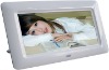 digital picture album Color: Black/white Display: 7 inch LCD screen Screen Ratio: 16:9, Aotu Power On/Off: Yes External Memory:SD/MMC/MS card USB key Control Interface: Via On-board buttons or remote controller Compatible File Types:- Video: MPEG 1/2,/4, AVI- Music: MP3- Picture: JPEG Image Transition Effects: Random/Fade In Fade out/Block1/block2/block3/block4/block5/block5/block6/block7/block8/block9 Slideshow Image Change Rate: 5sec/15sec/30sec/1min/3min/off Repeat Modes:Off/one/folder/All Input/Output/Connectivity:- Power IN- SD/MMC/MS Card Slot- USB port- Buttons:up-down-left-right-stop-menu-power enter Power Source: Power Adapter Built-in stereo speakers: YES OSD Language: English, French, German, Italian, Spanish, Portuguese, Dutch, and Polish. OR Chinese,English.
