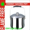 ENERGY CONSERVATION POT ITEM NO .ES-7L FLAME FREE KEEP BOILING NICE HEAT PRESERVATION FUNCTION ENERGY SAVING POT SIZE. 5 6 7 SET INCLUDING: INNER POT WITH HEAT GATHERING RING DOUBLE LAYERS OUTTER POT STEAMING SHEET AND CUP The bottom of the inner pot install a heat-gathering ring, Can be heated fast but heat dissipated slowly. The steel ring absorbs the heat from the fire when you are cooking. Once the food is aboil, you can cut off the fire source and move the inner pot into the heat-preservation outter pot.Then the heat-gathering ring will giving out heat, and keep boiling for 25 minutes without flame. After the food is finish, it will keeping the food in high temperature for long time. (100 degree to 50 degree need 8 hours).With this energy-saving pot, plenty of fuel can be saved (save 25% energy than pressure cooker, and save 50% energy than the other stainless steel pots, or aluminum pots)