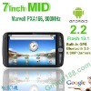 Newest Items!!! 7 InchMarvell PXA166, 800MHz Android 2.1 Built-In GPS,0.3MP Camera,Bluetooth,Support Flash 10.1 MID Specification: Model No: G07-ML CPU: Marvell PXA166, 800MHz OS: Android 2.2 Display: 7.0 Inch TFT Resistive Touchscreen,800 x 480 Pixels Memory: 256MB NandFlash: 2GB built-in, can extended upto 16GB by TF Card or Micro SD Flash: Support Froyo(10.1)Flash Play Authorization by Adobe (testing now,will support soon!)GPS: Built-In GPS,On-Board Chips Camera: 0.3M Pixel Front Bluetooth: Bluetooth 2.0 (Hardware is installed,software is still upgrade)Android Market: Download and install any compatible application from the Official Google Android Market.The number of available apps is approaching 10,000 ! 3G: Support 3G USB Dongle Wireless: WI-FI (802.11 a/b/g) Game: 3D Game Sensors: G-sensor(Built-in Accelerometer),Automatic screen rotation from landscape mode to portrait and vice versa.I/O Port 1X Standard Micro USB Port 1X 3.5MM Stereo Headphone Jack 1X MicroSD Card Dock 1X 2.0 USB PortSound System: Built-in Speaker Audio Player: Audio formats supported: MP3,WMA,AAC,OGG Video Player: Video formats supported: 1080P, MP4, AVI, WMV, DIVX, Flash,3GP,RMVB4 Mail attachment: Viewable document types: jpg,bmp,png,gif,txt,pdf,xls,doc,zip Built-in Google viewer & photo editor Supports third party software via the Official Google Android Market Battery Time: WIFI ON: 4 hours ; WIFI OFF: 6.5Hours Language: Support Multi-Language Accessory: 1 X 7.0 Inch Android Tablet PC 1 X Power Adapter 1 X USB Cable 1 X User Manual Product Size: 205 x 110 x 15MM , 400G Package Size: 240 x 200 x 90 MM, 1.3KG Picture Details: