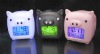 total seven color changing : blue : pink : green : yellow: purple : red : orange : Living in a fast-paced society brings a lot of pressure and stress to people. According to scientists research, light and color change can bring a significant improvement on these problems. The Piggy Glowing LED digital alarm Clock can soothe and relieve your pressure and stress. It is a fully functional alarm clock. It changes 7 different colors gradually. Enjoy the Piggy Glowing LED digital alarm clock with good mood! Glowing LED digital alarm clock Display time, date (from 2000 to 2099), week, temperature Support the time format of 12-hour and 24-hour Alarm and sleeping function Display environmental temperature: measurement of 0C -55C or 32F - 122 F and conversion of Celsius and Fahernheit temperature Color Light: send out the light of seven colors with circular changing Novelty design in pig shape Touching light, light sequence Can use as penholder and coin bank