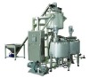 PURPOSE AND CHARACTERISTIC The warmmix is a weighing and mixing plant,electronically controlled with a micro processor,for the preparation of a pre-heated slurry necessary for the production of gums and jelly. The jacketed weighing vessel is mounted in a frame on a 3 point load cell assembly Thelower holding vessel has a heating coil within it to keep the premix at the correct temperature. Thewarmmix is available in a sophisticated version with PLC control system and operation screen or a dedicated batch weighing controller (economy execution). The warmmix can be used in conjunction with a thermal oil heat exchange system or guarantee the correct premix temperature with a minimal temperature difference between premix and heating mdeium.