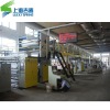 Three-layer corrugated cardboard production line Three-layer corrugated cardboard production line A. Largest effective paper width: 1800 mm. B. The maximum mechanical speed: 120 m/min. C. The maximum production speed: 100 m/min. E.Use of steam pressure:10 kg/cm2 F. Needed steam consumption:3,800 kg/hr. G. The use of starch: corn starch H.Test run paper standard: Paper-125gm2 – 180g/m2.( Water percentage 8-10%) Breaking resistance index(KNm2/g)3.5, Ring pressure index(N.m/g)8 Core paper-112gm2, Ring pressure index(N.m/g)5.5,( Water percentage8-10%) Core paper-130gm2, Ring pressure index(N.m/g)7,( Water percentage8-10%) - Designed speed: 100-250 m/min - Available width: 1400mm, 1600mm, 1800mm, 2000mm, 2200mm - Pressure roller Dia. 340mm, - Upper corrugating roller Dia. 322mm - Lower corrugating roller Dia. 322mm - Gluing roller Dia. 268mm, Gluing pressure roller Dia. 150mm - Preheat roller Dia. 295mm, Paper guide roller Dia. 110mm - 5 main mechanical structures 1) machine frame: side wall, base, gear box, pressure rollers 2) Corrugating rollers 3) Corrugating rollers, spare 4) rail cart 2 sets 5) Gluing rollers -Corrugated machinery incline positioning of corrugating rollers, with pressure roller upside - Modular designed corrugating rollers can be side out to replace, hydraulic cylinder to set pressure, to be fastened from side and bottom - Vacuum blower paper guidance - Gluing rollers, ( gluing roller & glue pressure roller), apply with universal joint driving (pneumatic clutch), and can be taken out (to clean), gluing width motorizing adjust - Main driving: transmission gear box and couplings driving corrugating rollers, presssure roller and gluing rollers - Lubricating: closed, immersed, self-cycle lubricating - 20 minutes quick replacing of corrugating rollers cardboard machine. Corrugated Cardboard Production Line