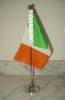 100% polyester flag with durable plastic ormetal base. Flag size: 4 x 6", 6" x 9" or 8 x 12". Finishing: heat cut or stitched on the edges. OEM project welcome.