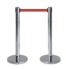 highquality queuebarrier dimension: 63*900*335mm (63mm as post dia, 900 as total height, 335 as base dia); material: good stainless steel for queue barrier; belt: 5000mm length*50mm width, nylon material; belt color: red, yellow, blue, greel, black, purple option; weight: 8kg; remarks: we can print customer's LOGO or design on belt.