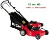 Lawn mower with CE and GS Model: DCM1486 Engine: DCM1P64F Maxpower: 4.5HP Displacement: 135cc Start way : Recoil Drive type: Self-propelled(Clutch) Idlespeed :2800rpm Cutting width: 460mm(18inch) Cutting height: 25-70mm,5 adjustment Height Adjustment: 1 lever adjustment Wheel Diameter:Front :6inch ,Rear:8inch Fuel tank capacity:1.5L Grass bag capacity:60L G.W./N.W(kg):38/36 PCS/CTN:1PC Deck:Metal Loading Qty (Pcs/20'/40'/40HQ'): 150/320/384