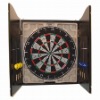 Flocking paper dartboard and MDF cabinet set Dartboard dimension: 18", thickness: 38mm Round wire spider, metal number ring Cabinet: MDF cabinet Dimension: 55*52.5*8cm Including 6 pieces ofsteel darts. 2 chalks and one eraser