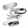 Camping Tool Set: Multi-Function Knife & Flashlight Set FlashlightMaterial: Alumimum, black soft plasticFunction: 3 pcs light, ropeSize: flashlight 12.8cmBetterySize: AA, LR6/ 1.5VMulti KnifeMaterial : Stainless Steel, black plasticFunction:1.knife;2.scissors;3.botte opener;4.can opener;5.saw;6.throw the fish scale knife 7.phillips screwdriver;8.wine bottle opener;9.leather punch;10.nail file;11.reamer; 12.key ring;Length: Knife 9cm--- Silver Tin with Foam Inlay Tray--- Packaging: Each set in pp bag and then cover by white paper sleeve--- LOGO: laser or print logo on each tool are available--- Carton Size: 44X40X18.6cm; 50pcs/ctn--- N.W.: 14kgs ; G.W.: 15kgs Mingshun Hardware Products Co., Ltd. specializes in producing Yangjiang knives, pliers, bottle openers and multi tools for businesses. Our products are sold to clients all over the world. Our company is located in Yangdong Industrial Park, Yangjiang City, Guangdong Province, China. We enjoy convenient transportation. Our factory covers an area of more than 8000 square meters, and we have about 150 production staff. We have inherited the traditional manufacturing process for more than a century, with unique red, bar and grinding throwing technique. We also combine modern management methods to produce hard steel, and fashionable, beautiful and durable stainless steel products. Moreover, we have a number of high-quality professional management and technical personnel. We follow the idea of "Customer First, the Credibility First, Quality First, and Honesty First". In order to survive in a competitive market, we have to develop and update continuously. We welcome domestic and overseas customers to visit us for business negotiation. We are following a few large enterprises and companies, and through examination of their works: Connor Group ,TARGET Cooperation of our major customers:USA Olympic Committee's Sheffield ,HUSKY ,TARGET,Appalachian TRAIL ,HESCO BASTION ,rolson,BUCK,