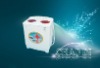 Washing machine Model:XPB90-100S(Zhong Guo Jie) Specification: 1)capacity:wash 9.0kg ,spin:5.5kg 2)input power:wash 480W/dry:200W 3)output power:wash180W/dry:60W 4)Voltage:220V/110V/50HZ 5) Dimension(W x D x H): 870x530 x1010mm (with feet) 6) Packing Size: 880 x540 x1030mm 7) N.W.: 27kg 8) G.W.:29kg Loadability:140pieces/40HQ' Features: 1)Rolling wheel feets , can be move easily by the old and children 2)See-through cover for knowing situation inside freely 3)Patent and innovated product 4)Strong waterfall spraying current. 5)All copper wire motor 6)All new material for the body and bottom 7)Spraying design for spin-drier tube,clean better 8)Patent "with Chinese drawing"design to enhance outer looking effect 9)Functional patent design"with drawer" 10)Patent design"Luminatedcontrol panel"
