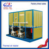 As the heat-conducting oil possesses some advantages of good thermal stability, good heat-transfer performance, low vapor pressure, non-toxic, tasteless and non-corrosive on equipment, our oil-conducting heating furnace has gradually been more extensive used in enterprise production. The characteristics of the system are following: 1 High-quality heat source Under normal pressure, the oil-conducting heating system in liquid phrase can output hot oil of maximum 350 centigrade degree for the heat user. Our oil-conducting heating system applied the Fuji temperature control instrument and intelligent self-turning temperature control technology (PID).The precision of control technology is up to about 1 centigrade degree, which can be accurately controlled in the range of the used temperature. The main power for heating uses non-contact switch circuit which is the solid state in order to adapt to the frequent switching, and which has no interference to the power supply. And it has the function of anti-dry. The cooling system for hot oil can be designed according to the end user requirement, so that it can satisfy the process requirement of rapid cooling after heating up. 2 Energy saving, low operating cost Oil- conducting heating system is closed cycle in the liquid phrase. The difference of temperature between the output oil and the return oil is within the range of 20-30 centigrade degree. That is to say only to heat a temperature difference of 20-30 centigrade degree can the working temperature be reached. Meanwhile, no water treatment equipment is required for this device. No lose of slam running, steam reeking, dropping and leakage as the steam boiler. The ratio of heating utilization is very high. It can save about 30% energy compared with the steam boiler. 3 Low investment of equipment Due to the reason that the system of oil-conducting heating system is simple, no water treatment equipment, no more auxiliary equipment, and low pressure bore by the boiler, the investment for the whole system is comparatively low. 4 Safety Because the system only withstands the pump pressure and it has no explosion risk, it is more secured. 5 Environmental protection The environmental effect of the organic heater carrier heating system is mainly reflected in the minimal fume emission, no sewage pollution and no thermal pollution. 6 Widely application It can be applied in the following areas: high-temperature shaping, plate heating, rubber, drying, dyeing and printing, chemical industry, plywood production, rolled water-proof material production, asphalt heating, non-woven hot-rolled machine, fiber, glass hot press machine, reactor, mould, drying room, oven, and other heating industries.