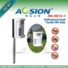 PIR Multifunctional Dogs/Cats/Birds Repeller AN-B010The device can emit ultrasonic, strong flash,high-decibel sound waves to drive away animals (such as cats, dogs, birds, mice, etc.) via function adjust button A according to different environmental needs. Applicability: PIR Multifunctional Dogs/Cats/Birds Repeller: suitable environment garden,yard,home and apartments,food service ,farms and so on. Technical data: 1.Power Supply: 9-volt battery stacked or a mains powered 9V adaptor2.Passive infrared area: 70 square meter3.Passive infrared area: 110 degree4.Frequency range:15-26KHZ5.Audio frequency:app 7KHZ6.Output sound pressure : 110 dB Specifications : PIR Multifunctional Dogs/Cats/Birds Repellerhas two work patterns for your choice, one pattern is auto-work ,the other pattern is passive infrared trigger work.Mode one with yellow LED:Ultrasound+Alarm+FlashingMode two with green LED:Ultrasound+FlashingMode three with red LED:UltrasoundMode four with the red flashing LED: Long time ultrasound without passive infrared(the LED refer to photo)Method: 1.Put on the battery or plug unit intosocket,the head of 8 LED light will flash and indicate the power has been connected,2 second later the device prepare for work. Long press the button A( refer to photo ) the yellow LED auto turn on and enter into the first working mode, after about 20 seconds into the alert mode, When the passive infrared probe to the target, trigger the first mode work(ultrasonic+alarm+falishing), work continued 30 seconds enter into the alert mode again.2.You can choose different working mode according to different using environment,after the power turn on and long press the button A enter into the state of choose working mode,then press the button A to choose the working mode (yellow LED,green LED,red LED and flashing the red LED)3. The conversion time of first three modes, need 10 seconds enter into the alert mode and the first three modes are all woking by the passive infrared. working cycle is about 30 seconds,4.Long press the button A,turn off the power(turn off all LED),the device stop working. Attention: 1.The environment have long time nobody stay,please pull out the plug or take off the battery.2.Keep in mind the frequency waves will not travel through the furniture or other goods.Make sure to plug the unit into an outlet clear of surrounding object.3.Try to avoid work long time in wet situation and prohibit use devoice dip in the water.4.In order to make the device long time working,we suggest you use the adapter(DC 9V,600mA) if the environment allowed.