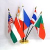 Polyester table flag: Normal Size: 10x15cm 12x18cm 14x21cm Material: 68D 100% Polyester 100D 100% Polyester 110g knitted polyester Satin Flag base: Wooden base Plastic base Steel base Copper base