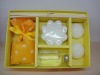 Reed diffuser: 1 bamboo charcoal bag, 1 scented ceramic lotus flower, 50ml clear aroma reed diffuser, 2 floating candle. We welcome OEM.