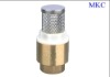 check valve code:MKCsize:1/2"-4"max pressure: 16bar (ISO5208)temp.: -10<t<100suitable medium: waterpipe thread to ISO-07material: brass body , brass desc.NO.ComponentMaterial1BodyBrass2Wedge DiscBrass3PinBrass4BonnetBrassFATURES:CHECK VALVE are suitable for hote and cold water . Compressed air , oils .Perfect seal at low and high pressure , within a wide temperature range ,Very silent functioning , very low water hammering .Compact dimensions, superior performances and constandt high quality .