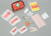 one ofthe hottest seller!! Contents: Total : 18pcs 01 Triangular Bandage 1pc02Elastic Bandage 1pc03 Adhesive Tape 1pc04 Safety Pins 4pcs05 Scissors 1pc06 Mouth to Mouth Mask 1pc07 Large Adhesive Strip 1pc08 Wet Wipe 1pc09 Wet Soap Wipe 1pc10 Non-Woven Swab 1pc11Adhesive Plaster 5pcs12 PVC Bag (12.5 × 8 × 5.5 cm) 1pcThis is the hottes first aid kit !!! Welcome to visit our company