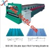 Double Layer Roll Forming Machine: Forming Speed: 12-15M/MINDouble Layer Roll Forming Machine: Introduction: RFM25-205-820/1025 & 30-150-900 double layer roll forming machine consists of Uncoiler and its Base, Coil Sheet Guiding Equipment, Pre-Cutting (Optional), Film Covering Device(Optional), Roll Forming System, Post-Cutting Equipment, Hydraulic Station, Controlling System, Supporter Table. Technical Parameters:Material Spec: Colored Steel Sheet; Galvanized Steel SheetThickness of Coil Sheet: 0.3-0.8mmMain Motor Power: 5.5KWForming Speed: 15-18M/MINHydraulic Station Power: 5.5 KWQuantity of Stands: 17 StandsHydraulic Pressure: 10-12MpaControlling System: PLCIndex Error of Length: 10M ± 2mmTotal Weight: About 80000KGSVoltage: 380V 3 Phase 60Hz or At Buyers RequirementMater of Main Equipment:Roller Material: High Grade NO.45 Forged Steel, Plate Hard Chrome on the Surface of Roll with Thickness 0.05mmActive Shaft Material: High Grade NO.45 Carbon Wrought Steel at Φ 75mmCutting Blade: Cr12 Mould Steel with Quenched TreatmentElectric Elements: Control System with PLC Model: S7-200, Siemins. Transducer with ABB Control Panel with TP170, Siemins it can input 10 sets of spec at one time.Oil Tank Model of Hydraulic System: CB-E310.