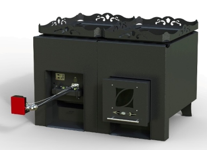 Furnace heater, metal, for steam rooms up to 60 m3. Run on natural or liquefied gas and firewood (during the installation of the fuel consumer). Burner gas, auto, 16, 20 and 36 kW.