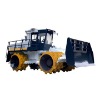 6600 series trash compactor Trash compactor is necessary for the landfill site in terms of its functions of leveling, crashing and compacting trash. This series of trash compactor is a self-propelled articulated four-wheel drive trash compactor with the strong climbing capacity, compacting effect and high production efficiency, including light, middle and heavy specifications. It is mainly used for the leveling and compacting work of the garbage dump. Also, it is applicable to the filling compaction work in highway, airport, port, dock, dyke and a variety of industrial contraction site, especially the compaction of ductile material. Salient Features 1. Mechanism with four-wheel drive and four-wheel brake 2. Shanghai diesel CATERPILLAR C6121 water-cooling supercharger diesel engine 3. Separated hydraulic torque converter and gear box with hydraulic power shift are adopted 4. The compaction wheel is installed with special arranged antifriction teeth, and there are scraping teeth as well as shearing teeth in front and rear of the wheel 5. Imported American NO-Spin automatic interlock differential is installed in driving axle 6. Germany VOGEL centralized lubrication system 7. Imported American pump is adopted in medicine sprinkling system 8. Driving cab is equipped with 7 inches LCD flat panel back up monitor (with remote control), high and low water-proof camera, Siemens VDO audio system, negative ion generator, cooling-warming air conditioning, electric fan and extinguisher; Driving cab can be turned over and is convenient for maintenance; Equipped with roll-over protective structures (ROPS) Main technical parameters Item Unit 6620 6623 6626 6628 Engine C6121 Rated power kw 155 187 Working weight kg 20000 23000 26000 28000 Rolling width mm 3330 3800 Height of bulldozer shovel mm 1930 Width of bulldozer shovel mm 3400 3860 Hoisting height of bulldozer shovel mm 1200 Working depth of bulldozer shovel mm 200 Maximum climbing capacity % 100 Ground clearance mm 460 Maximum running speed km/h 9.5 External dimension mm 7785X3400X3770 7785X3860X3770