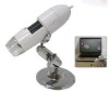 Image Sensor: 1.3M pixels Controller: High Speed DSP Lens: Dual Axis 27X & 100X Micro-Scope Lens Focus Range: Manual Focus from 10mm Infinite Snap Shot: Software and Hardware (Optional) Video Capture Resolution: 1280 x 960, 800 x 600, 640 x 480, 352 x 288, 320 x 240, 160 x 120 Still Image Capture Resolution: Up to 1280 x 960 Frame Rate: Max. 30f/s Under 600 Lux Brightness Flicker Control: 50Hz / 60Hz Option Video Format: AVI Light Source: White Light LED x 4 Magnification Ratio: 20X 200X (Manual) Power Supply: USB Port (5V DC) Software Compatibility: TWAIN / VFW/ Direct Show AP (Driver) System Requirement: Pentium Computer with 700MHz & Above, 20M HD Space CD ROM Driver, 64MB RAM, Direct X VGA Card. Interface: USB1.1 & USB2.0 Compatible Dimension: 112 mm ( L ) X 33 mm ( R )Accessories: A1-Alloy Stand, User Guide, CD ROM (Driver), Color Box