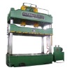 YHD32-800T Four Columns Hydraulic Press Machine, press machine,hydraulic press, ISO, CE certificate, 800 tons. Parameter 1 Rated force 8000KN 2. Knock out force 1600KN 3. Max. pressure 25Mpa 4 Max. day light1500mm 5 Ram stroke 900mm 6 Knock out stroke 350mm`` 6Effective working table sizeL-R1500mm F-B 1400mm 7 Ram speed Approaching 80mm/s Working 6mm/s Returning 70mm/s 8 Motor power60KW Structure This machine is organized by the main structure and control system. Main structure is including main body, main cylinder, stroke limited equipment, etc. Control system is including hydraulic station, electric part, moving operating station. Main body The main body is organized by press crown, beam, working table, uprights, locknuts and adjusting nut. There are guide sleeve to be employed inside the beam. The precise can be adjusted through adjusting the locknuts and adjusting nuts that tightened on the press crown. There are T-type channels on the beam and working table, so that the tools can be equipped convenience Main cylinder Main cylinder is fixed on the press crown Stroke limited equipment The stroke limited equipment is installed on the left side of the machine, it can control the stroke distance, the beam stroke distance can be adjusted by adjusting the distance of the travel switch. Hydraulic Station It’s including oil container, axial plunger pump, motor, two-ways cartridge valve, oil cleaner, air cleaner. Press gauge and overflow valve are equipped on the oil container so that the operator can observe the hydraulic pressure and adjust the oil pressure easily. Cartridge valve equipped for hydraulic system, reliable, durable and less hydraulic shock. The machine is equipped the hydraulic supporting safety loop to keep the security when the beam is out of control. Water cooler is employed to cool the temperature of the hydraulic oil to keep the oil temperature doesn’t exceed 55°C. When the oil temperature is over 45°C, connect the water cooler system, the system will give a alarm when the oil temperature is over 50°C; When the oil temperature reach 55 °C, the control system will cut off the power to keep the oil temperature not over 55°C. Electric control system The electric cabinet is separate from the main structure, this machine is supplied with the moving operating panel so that the operator can operate machine at a big area range. Power: AC380V,50 Hz Operating system 6.1 Inch action Mainly used for adjust the machine and change tools, 6.2 Manual 6.3 Semi-automatic: press the respectively buttons to finish one working circle 6.3.1 Without knock out techniques, Beam down in no-load mode →beam switch to work mode by proximity switch → beam down in work mode till desired force achieved→ start time relay when desired force achieved → beam all way up after time on time relay runs out 6.3.2 With knock out techniques Beam down in no-load mode →beam switch to work mode by proximity switch →beam down in work mode till desired force achieved→ start time relay when desired force achieved → beam all way up after time on time relay runs out →knock out cylinder at upper limit start time relay→ knock out cylinder return after time on time relay runs out 6.3.3 Drawing techniques Beam down in no-load mode →beam switch to work mode by proximity switch → beam down in work mode till desired force achieved→ start time relay when desired force achieved → beam all way up after time on time relay runs out Security protection Beam upper limited is protected by the light curter With “PAUSE” & “EMERGENCY STOP” button. With Second supporting loop for the main cylinder Security valve for hydraulic loop Main components Transformer: Simens Middle relay: Simens Time relay: Simens Breaker: Simens Thermal relay: Simens Oil pump: 25YCY14-1B Chinese famous brand Main motor: Simens Valves: TAIFENG Seals: PARKER Buttons: Simens PLC: Mistsubushi
