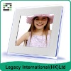 12.1 inch Digital Photo Frame (DPF1211)Product model: DPF1211Product details:• Frame material: Acrylic• Photo format supported: JPEG, MPEG1, MPEG2 and MPEG4• Audio format supported:MP3,WMA• Video format supported: AVI• USB interface for connecting to the card reader and HDD (hard disc drive) MINI 5 pin USB interface: connect data cable to the interface, user can update Information in storage device• Build in Flash (optional), up to 4G• Build in speaker• Compatible memory cards: CF, SD, MMC, MS, XD, U disk• TFT-LCD screen display• High resolution• Adjustable contrast ratio, wide visual angle, clear display and rich color• Automatic Photo slide show and playback• Fit for memory cards and music background• Infrared remote control• Photo playing speed adjustable, interval setup• Revolve the digital photo frame 90°, the image will automatically rotate• Different colors and styles of frame for your choice• Six to eight languages are available: Chinese, English, French, Spanish and so on (default language are: English, Chinese)• Panel size: 12.1 inch• Aspect ratio: 4:3• Display resolution: 800*600• Brightness: 450cd/m2• Viewing angle: 65:65• Speaker: 2 x 1.5W• Power input: 12V, 1500mAh• Accessories: manual, remote controller and power adaptor• Pass RoHS, FCC and CE certification