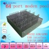 GSM/GPRS: 900/1800 or 850/1900 or 850/900/1800/1900MHz64 SIM card slotsWireless access to internetComply with GSM Phase2 standardSend and receive SMS, MMS, e-mail and dataMaximum transmitting speed 115KBpsInput voltage: 100V- 240VWorking temperature: -20 to +60Storage temperature: -25 to +70Double tone multi-frequency function(DTMF)Send maximum 38400 SMS per hourDimension: 495x 480 x 125mmAccessories: 1 power cable, 1USB cable, 64 antennas, 1CD