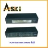 HDMI Matrix Switch Our series of HDMI converter.switchers, extenders, matrixes and splitters are designed to make your A/V device use more convenient ,more comfortable, more productive and more cost-efficient.The 8x8 HDMI matrix access to eight HDMI sinks, using eight HDMI sources. The matrix allows eight HDMI devices to be switched or split easily to eight HDMI compatible monitors or projectors. The Matrix can also be placed at the end of a long HDMI cable to regenerate the HDMI signal.Our devices offers solutions for noise, space and security concerns, data center control, information distribution, conference room presentation, school and corporate training environments.FEATURES l Eight HDMI 1.3 input signals switched or split to eight HDMI 1.3 sink devices. l HDMI Rev 1.3b compliant. l HDCP 1.2 protocol compliant. l Support CEC. l Support deep color 30bit, 36bit. l Support Blue-Ray 24/50/60fs/HD-DVD/xvYCC. l Digital audio format, as DTS-HD/Dolby-trueHD/LPCM7.1/DTS/Dolby-AC3/DSD. l Support signal retiming. l Support input up to 10 metres AWG26 HDMI 1.3 standard cable length, output up to 20 metres AWG26 cable length. l Inputs can be switched with the IR remote control,also can be controlled by eight buttons. l With RS-232 remote control,the device can update software and switch the inputs to outputs with PC. l With leds,the status of the inputs and outputs can be easily displayed. If any source or any sink is effectively connected,the relative led will be lit. l With seven-segment digital tube,the user can well know the relationship between the inputs and outputs. l It can smartly jump over those input sources which are not connected. l With the smart function of memory, it can come back to the latest status when restarted or reconnected. l No loss of quality l Installs in minutes l Need DC24V/3A power supply RS-232 Setting:Baud rate.........................................................................................................9600Data bits ........................................................................................................................ 8Parity ....................................................................................................................... NoneStop bits ..........................................................................................................................1CRC bitsNoneFlow Control .............................................................................................................. NoneSPECIFICATIONS: HDTM0808 HDMI versionHDMI 1.3b HDCP version....HDCP1.2 HDMI resolution ....24/50/60fs/1080p/1080i/720p/576p/576i/480p/480i Support video color format ...24bit/deep color 30bit,36bit Support audio format.DTS-HD/Dolby-trueHD/LPCM7.1/DTS/Dolby-AC3/DSD Max ....6.75Gbps Input/Output TMDS signal ... 0.5 1.5Volts p-p Input/Output DDC signal .. 5Volts p-p (TTL) Input cable distance..... ...≤15m HDMI AWG26 Output cable distance....≤20m AWG26 HDMI 1.3 standard cable Max working current...2.0A Power adapter formatInput:AC (50HZ, 60HZ) 100V-240V; Output: DC24V/3A Operating temperature range... (-15 to +55) Operating humidity range...5 to 90%RH (No Condensation) Dimension (L x W x H) .380x140x60(mm) Weight.....1950g
