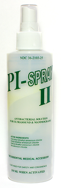 Дезинфектант для использования при ультразвуковых и маммографических исследованиях. Предназначен для очистки и дезинфекции УЗИ-датчиков, а также компрессорной плиты, щитка для подбородка и решетки маммографа,