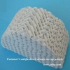 The Ceramic Structured Packing has the advantages of 1000 or above). It is flexible in operation and without amplification effect in a large tower, and particularly suitable for the rectification and absorption of corrosive mixture on the occasion of strict requirements of pressure drop and number of theoretical plates.Physical & Chemical properties Acid resistance:≥99.8% Thermal resistance:≥1000 Mohs' hardness scal:≥7 Crushing strength:≥2.0MPa Characteristic Indexes of Ceramic Structured PackingsType Surface areaVoid fractionBulk density Wave height Wave spanThicknessNtMax.F-factor P UNIT m2/m3%kg/m3 mmmmmmm-1m/s.(kg/m3)0.5 Pa/m 45045075520-5506.0±0.512±0.51.0-1.33-41.8-2.0200-25040040076500-5207.0±0.514±0.51.0-1.32.8-3.22.0-2.2180-26035035078480-5208.0±0.516±0.51.2-1.52.5-2.82.2-2.6200-26025025082420-45011.0±0.522±0.51.2-1.52.3-2.52.6-2.8220-28016016086350-38017.0±0.534±0.51.5-2.01.8-2.02.8-3.0250-30012512587300-35023.0±0.542±0.52.0-2.51.5-1.83.0-3.2280-35010010090220-25030.0±0.550±0.52.0-2.513.5250-300 The ceramic structured packing has the types of 100-750X/Y, X and Y respectively represents the wave angle are 30° 45°, and the number means the value of surface. The diameter can be manufactured in 100-8000mm, if upon request, it can also be designed and manufactured to meet the need of specific applications.